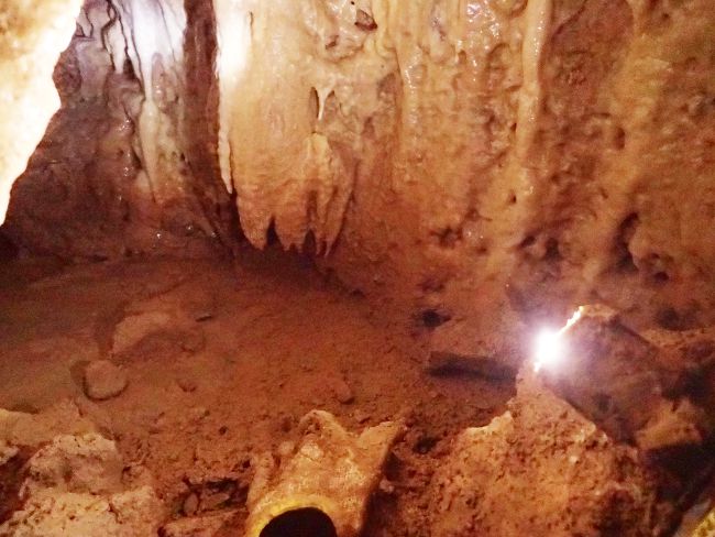 Und nun kommen wir zum Ergebnis der Aktion. Denn das lässt sich sehen. Wir konnten den Schacht um einen weiteren Meter tiefer legen und einen Schlufgang mit einer Länge von ca. 6m ergraben. Am Ende dieses Ganges erweitert sich die Höhle zu einer kleinen Kammer, die sehr schön mit Tropfsteinen und Sinter geschmückt ist. Von hier aus geht eine Kluft senkrecht in die Tiefe. Die Tiefe konnte mittels einiger kleiner Steine übereinstimmend mit 10-20 Metern ausgelotet werden.