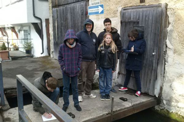 (v.l.n.r.) Marc, Laura, Markus Boldt, John, Julian, Madeleine an der Messstelle